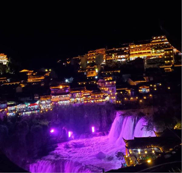 夜幕下的芙蓉鎮(zhèn)。奔騰的瀑布,有著旺盛的生命力!